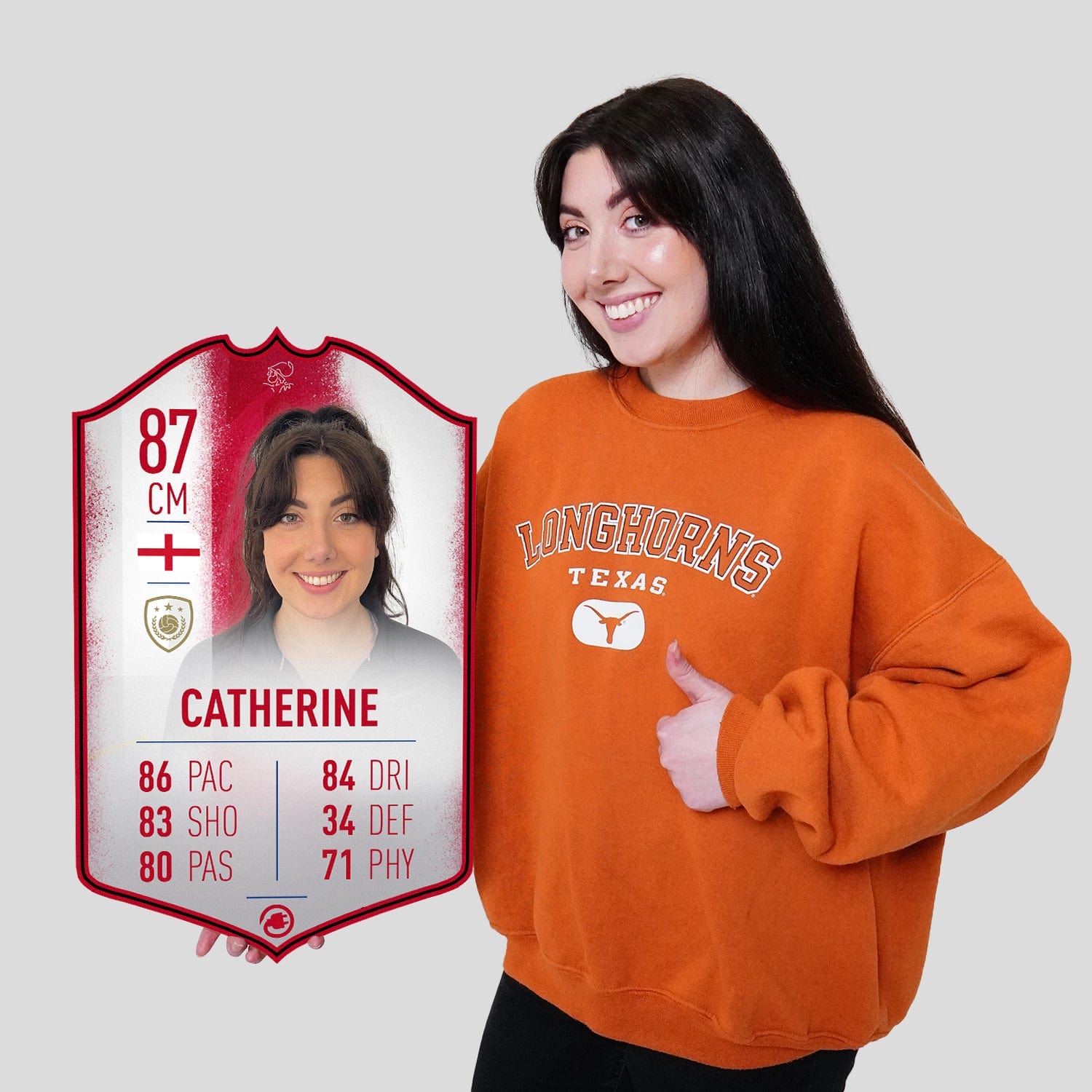 When it comes to personalising your card, the basic steps are to upload a photo and add a name to your card. Then you’ll add details like your player’s position and skill ratings out of 99 for each football skill shown on the card. Our online card builder makes this really easy. And if you aren’t a football card expert, don’t worry!
