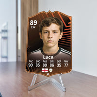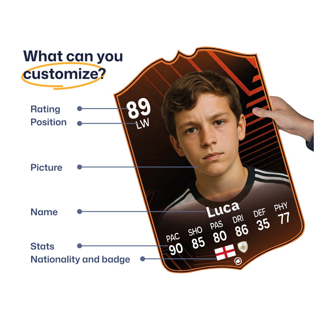 Yes! Our football card designers will remove the background from the photo you upload so it looks just like the football cards you might’ve seen games like EA FC 25, EA FC 24 or FIFA. We’ll also position the photo perfectly on the football card so it looks great. If there are any problems with the quality of your photo, we’ll reach out and let you know. Plus, our website's AI will remove the background on the image for visual purposes before purchase so you can see it without a background on the card.