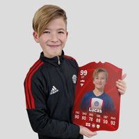 Our football card builder lets you choose between two different card materials. Our Standard cards are made of a ultra-strong variety of Foamex (not cardboard or foam!). This material has a lovely gloss finish and is also super durable. Our world-exclusive Metal football cards have a matte finish and are slightly heavier. Both look amazing and will last forever.