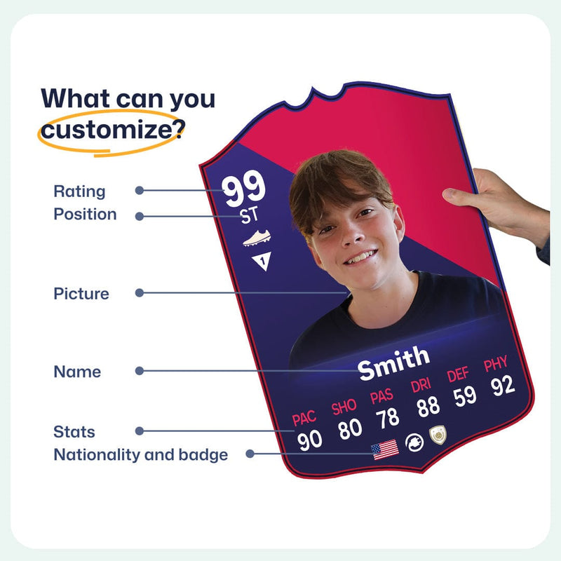 Yes! Our football card designers will remove the background from the photo you upload so it looks just like the football cards you might’ve seen games like EA FC 25, EA FC 24 or FIFA. We’ll also position the photo perfectly on the football card so it looks great. If there are any problems with the quality of your photo, we’ll reach out and let you know. Plus, our website's AI will remove the background on the image for visual purposes before purchase so you can see it without a background on the card.