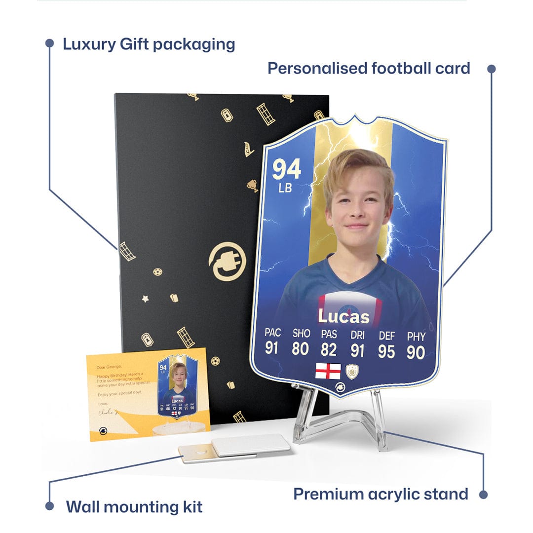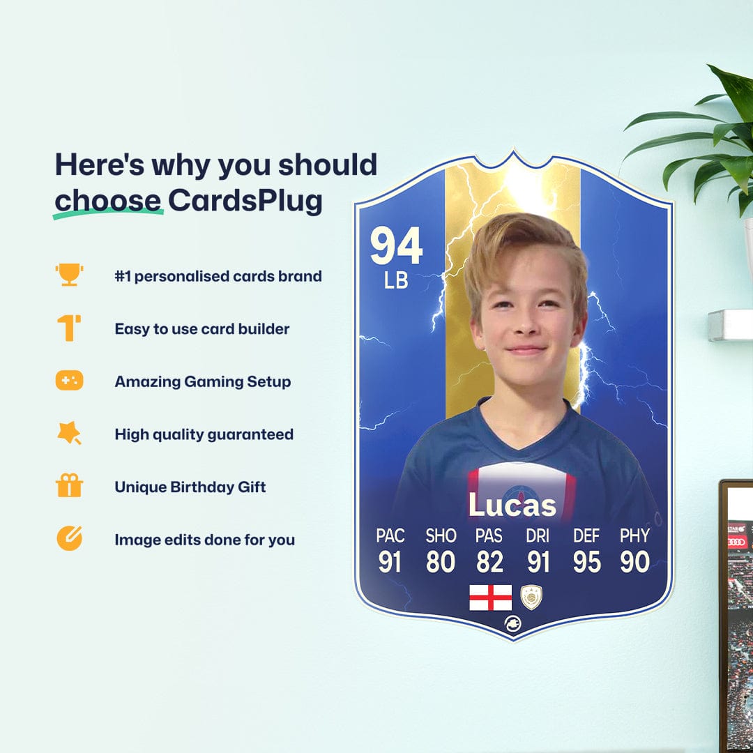 CardsPlug is home to the world’s favourite personalised football cards. Our easy football card builder lets you make a real life football card with your own name, photo, and skill ratings. With 100+ designs to choose from and some inspired by EA SPORTS FC 26 cards seen in EA FC 26, EA FC 25 and FC 24 as well as FIFA cards seen in games like FIFA 23 and FIFA 22.