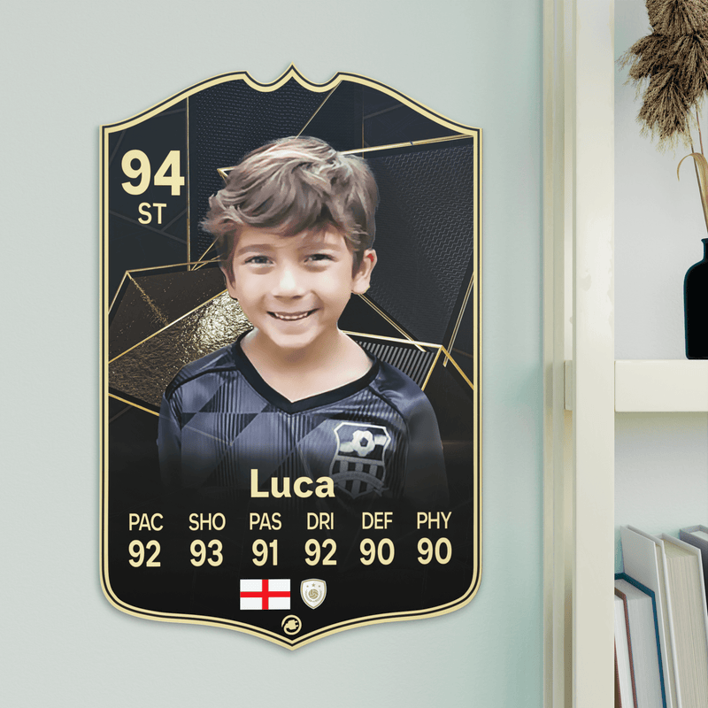 Our football card builder lets you choose between two different card materials. Our Standard cards are made of a ultra-strong variety of Foamex (not cardboard or foam!). This material has a lovely gloss finish and is also super durable. Our world-exclusive Metal football cards have a matte finish and are slightly heavier. Both look amazing and will last forever.