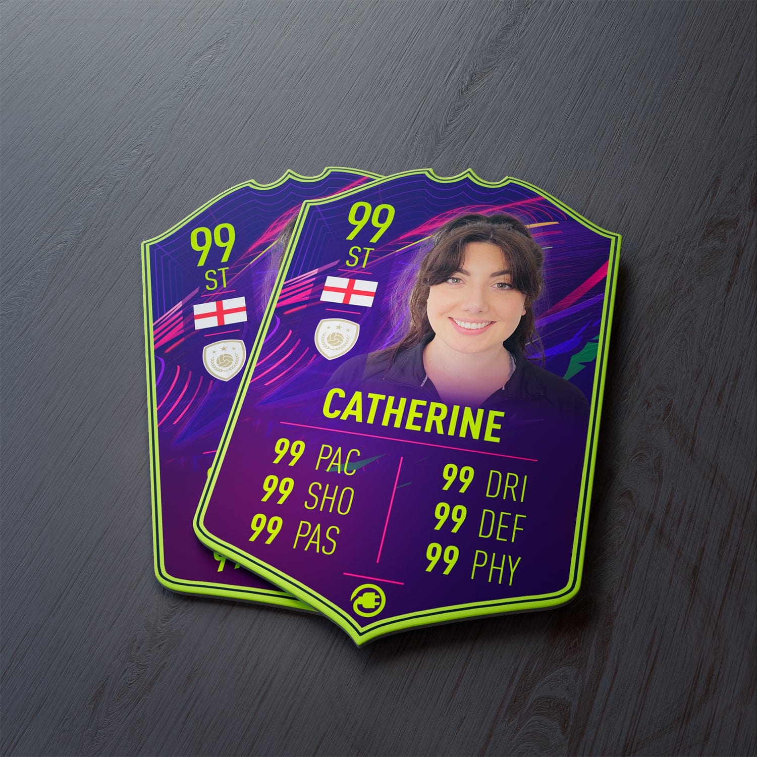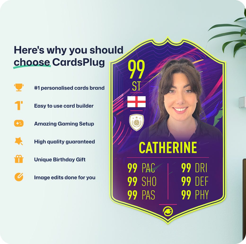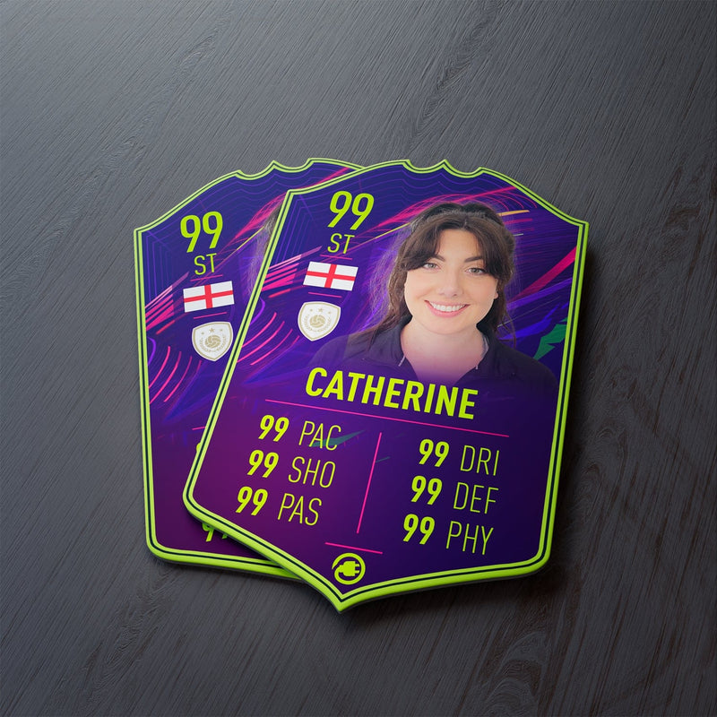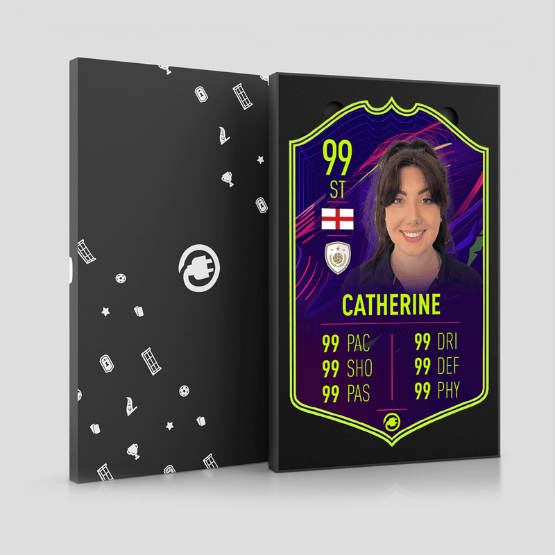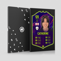 CardsPlug is home to the world’s favourite personalised football cards. Our easy football card builder lets you make a real life football card with your own name, photo, and skill ratings. With 100+ designs to choose from and some inspired by EA SPORTS FC 26 cards seen in EA FC 26, EA FC 25 and FC 24 as well as FIFA cards seen in games like FIFA 23 and FIFA 22.