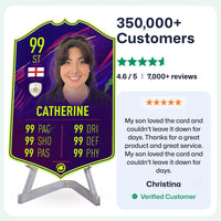 Yes! Our football card designers will remove the background from the photo you upload so it looks just like the football cards you might’ve seen games like EA FC 25, EA FC 24 or FIFA. We’ll also position the photo perfectly on the football card so it looks great. If there are any problems with the quality of your photo, we’ll reach out and let you know. Plus, our website's AI will remove the background on the image for visual purposes before purchase so you can see it without a background on the card.