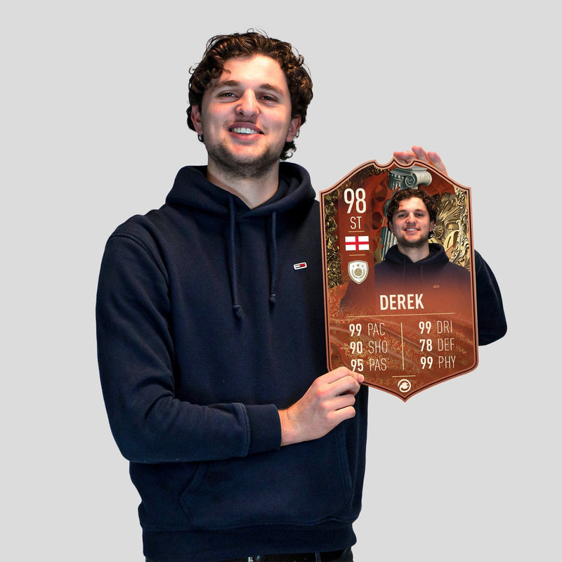 Yes! Our football card designers will remove the background from the photo you upload so it looks just like the football cards you might’ve seen games like EA FC 25, EA FC 24 or FIFA. We’ll also position the photo perfectly on the football card so it looks great. If there are any problems with the quality of your photo, we’ll reach out and let you know. Plus, our website's AI will remove the background on the image for visual purposes before purchase so you can see it without a background on the card.