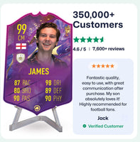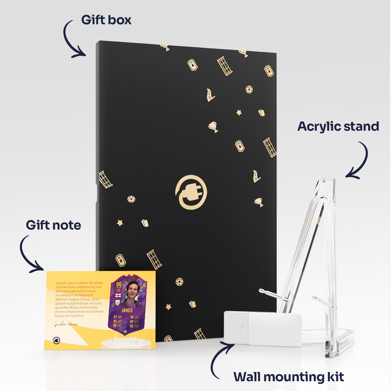 CardsPlug is home to the world’s favourite personalised football cards. Our easy football card builder lets you make a real life football card with your own name, photo, and skill ratings. With 100+ designs to choose from and some inspired by EA SPORTS FC 26 cards seen in EA FC 26, EA FC 25 and FC 24 as well as FIFA cards seen in games like FIFA 23 and FIFA 22.