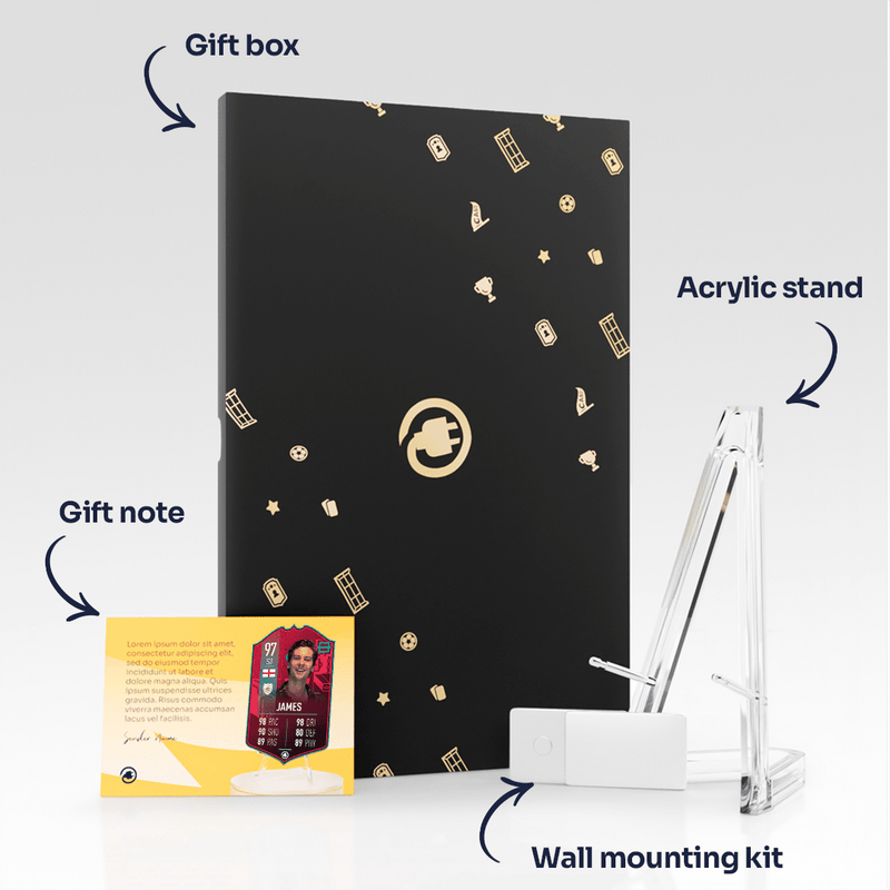 CardsPlug is home to the world’s favourite personalised football cards. Our easy football card builder lets you make a real life football card with your own name, photo, and skill ratings. With 100+ designs to choose from and some inspired by EA SPORTS FC 26 cards seen in EA FC 26, EA FC 25 and FC 24 as well as FIFA cards seen in games like FIFA 23 and FIFA 22.